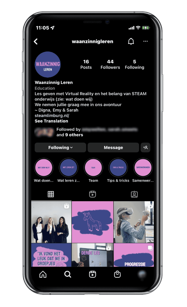 To capture our experience, we settled on Instagram and proceeded to develop the content, design, and launch the page. At the end of the project, we presented our page: Waanzinnig Leren (translation: incredible learning), provided recommendations, and shared our vision for the future.
